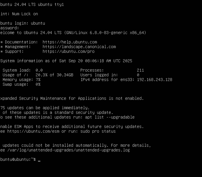 我们安装好Ubuntuserver系统后 会进入登录界面 如上图,如果要进入系统我们需要输入安装时创建的 用户名 然后回车(如下图)此时需要我们输入 创建用户时设置的密码(注:此时输入密码是不会显示的,并不是你没有输入)输入完密码后回车登录系统。