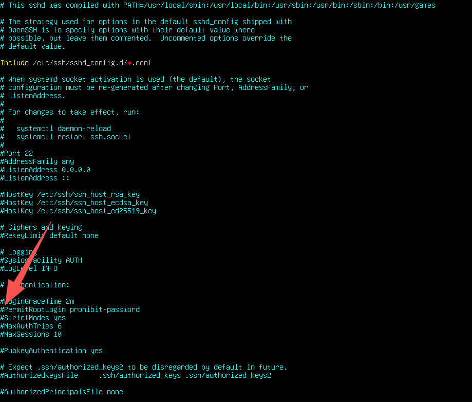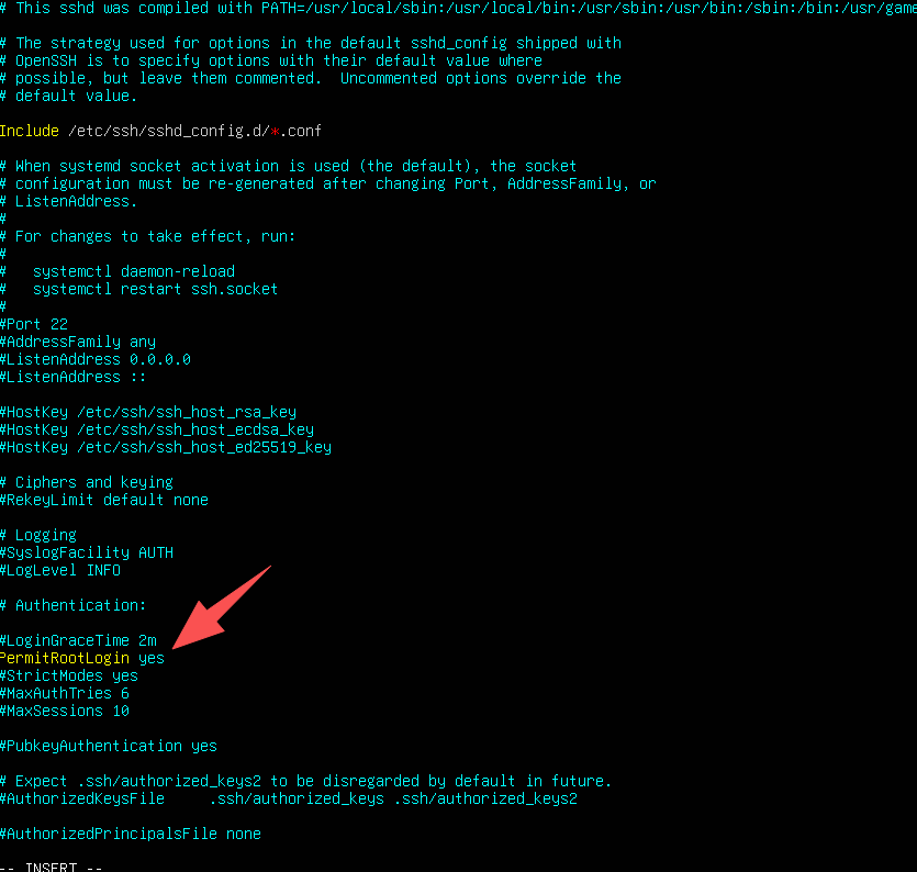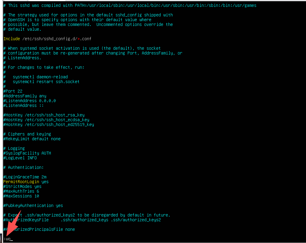 将 #PermitRootLogin prohibit-password 修改为 PermitRootLogin yes 如下图所示