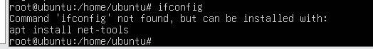输入以上指令回车 即可显示本机连接信息,如出现以下提示表示系统未安装net-tools 输入指令 apt install net-tools 回车安装即可